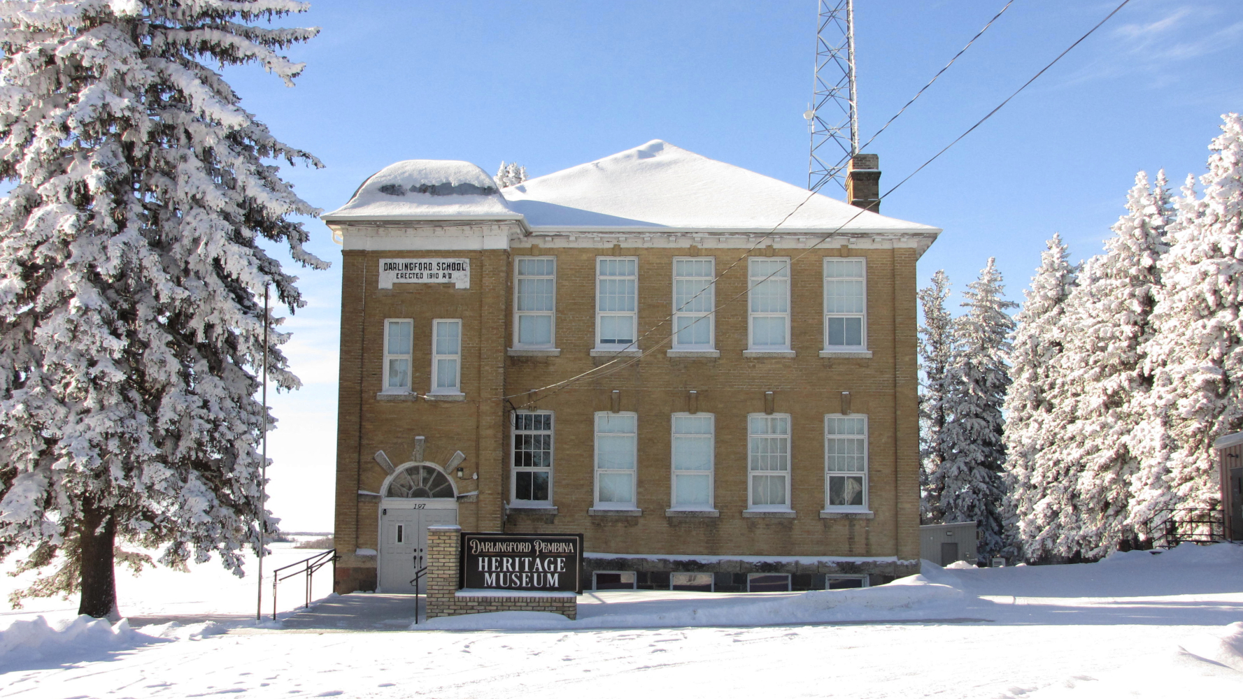 The Darlingford School Heritage Museum, constructed in 1910 as a school, was designed with provisions for a southern expansion that never materialized. It operated until 1984, received provincial heritage designation in 1987, and reopened as a community museum. The facility adopted its current name, Darlingford Pembina Heritage Museum, in 2023.
