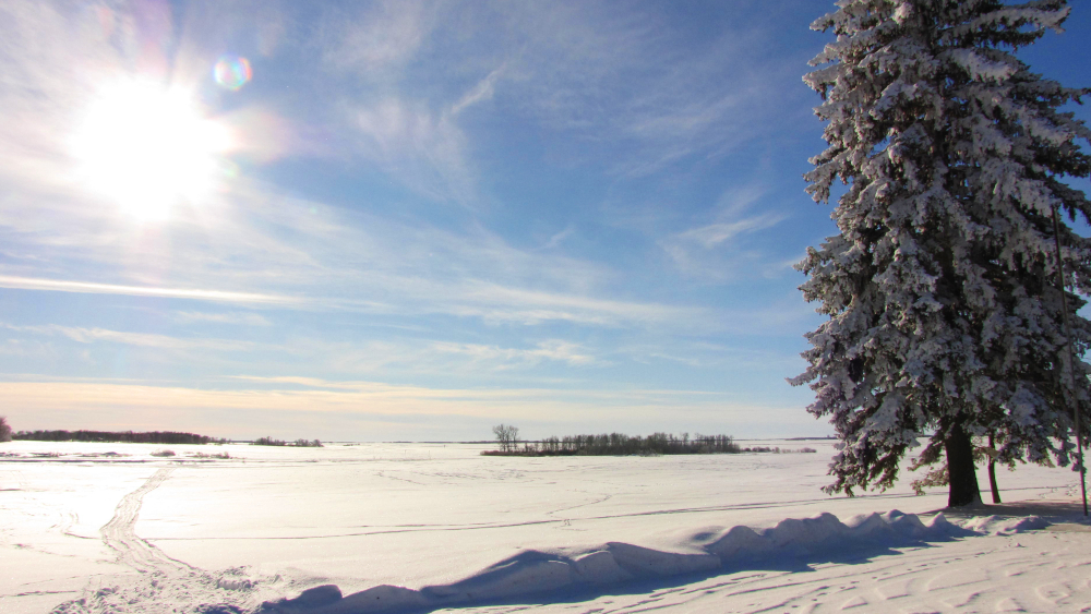 Recently, I explored the village of Darlingford, Manitoba, under clear skies following a recent snowfall. My previous visit to the area also had sunny skies but this time the temperatures were much cooler, approximately a 35°C drop.
